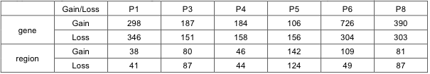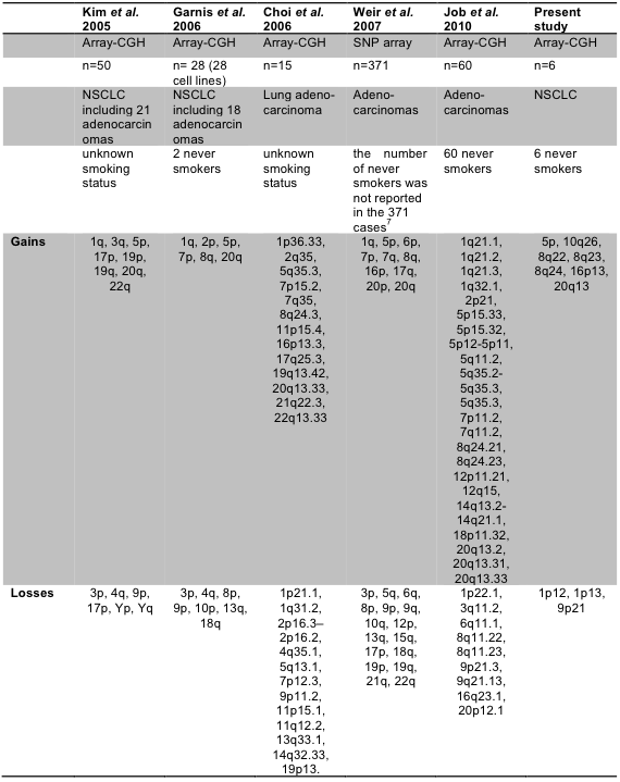 Supp. Table 10. Gain and loss in previously published papers and in present study