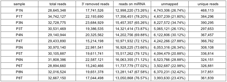 Supp. Table 7. Mapping statistics of small RNA-Seq data